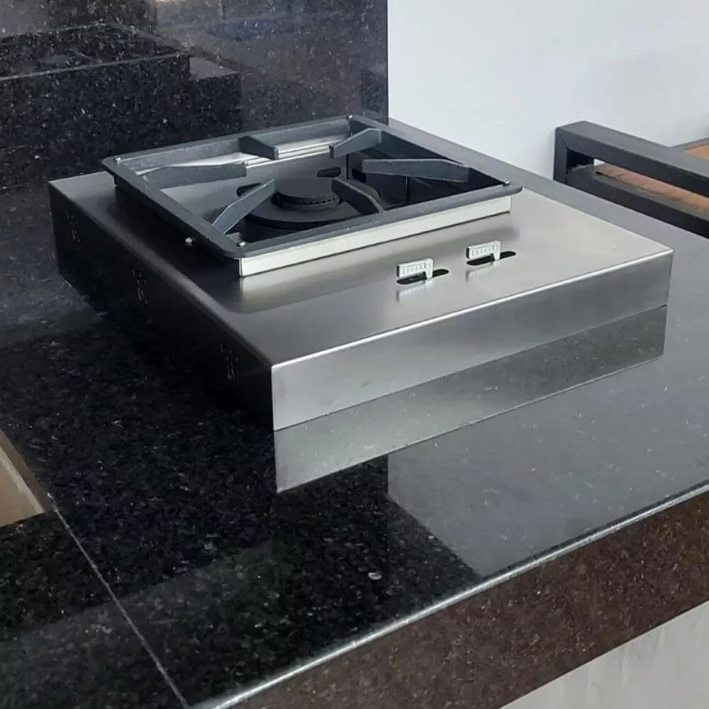 Fabricada em aço inox 304 escovado, sendo o melhor material para regiões onde á maresia, com queimador industrial duplo, com regulagem de pressão.