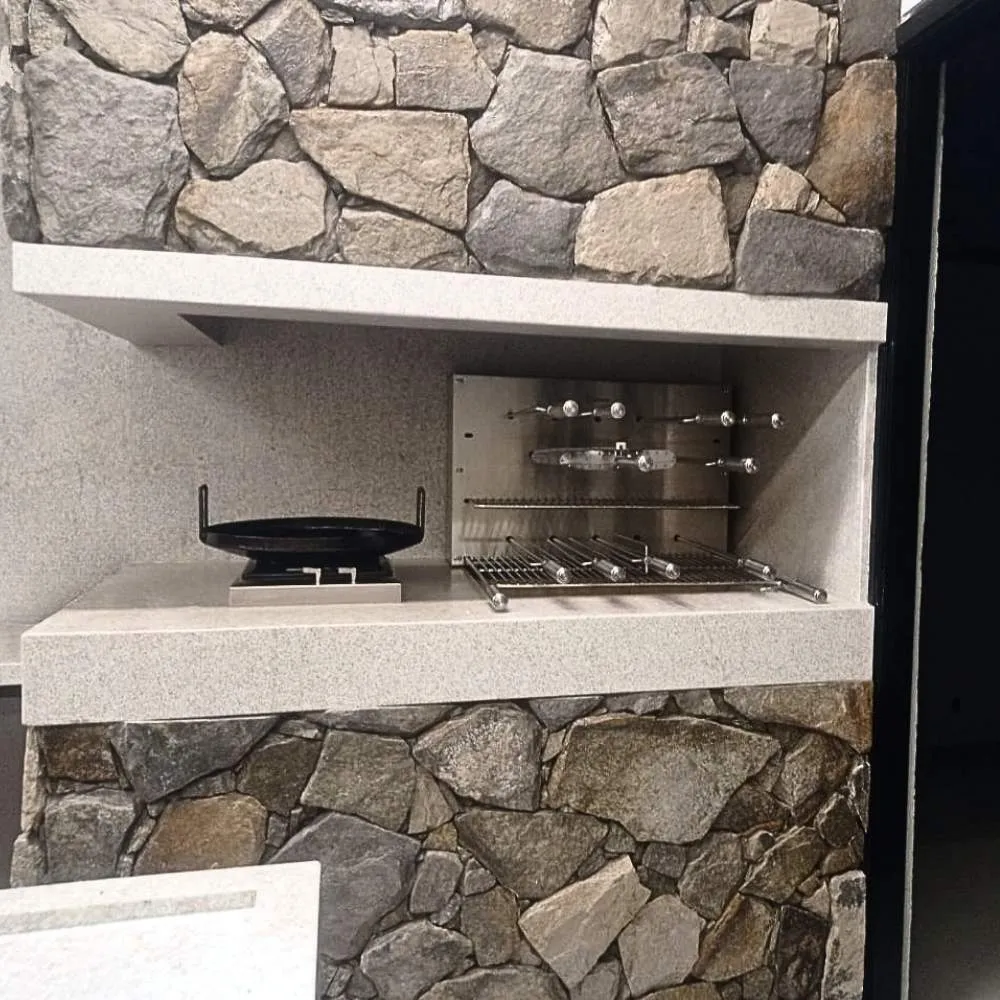 Design próprio, com canaletas e coletor de gorduras removível. Alto padrão, não corta a mão, sem rebarbas, chapa grossa, assa melhor os alimentos.